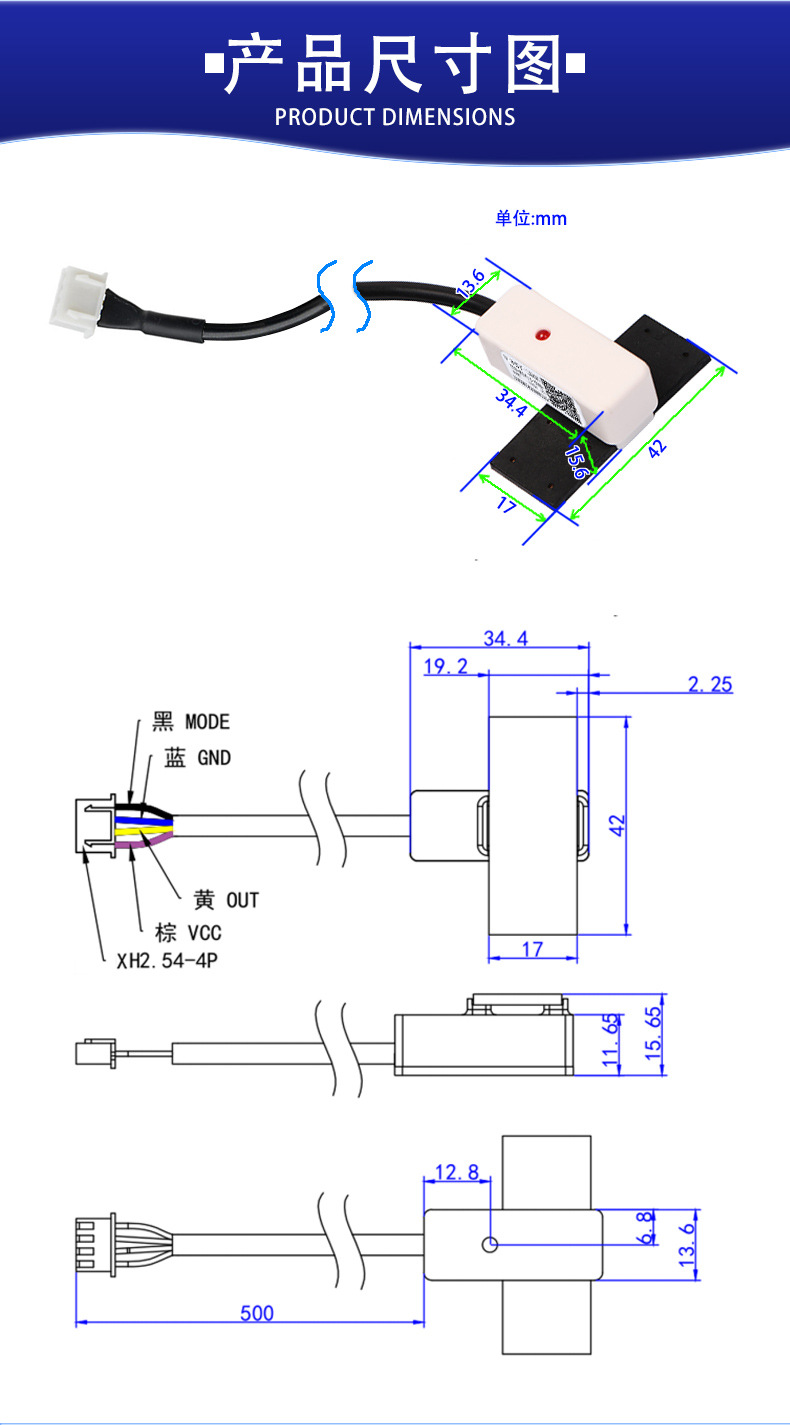 brown: positive electrode of the power supply; Blue: negative terminal of the power supply